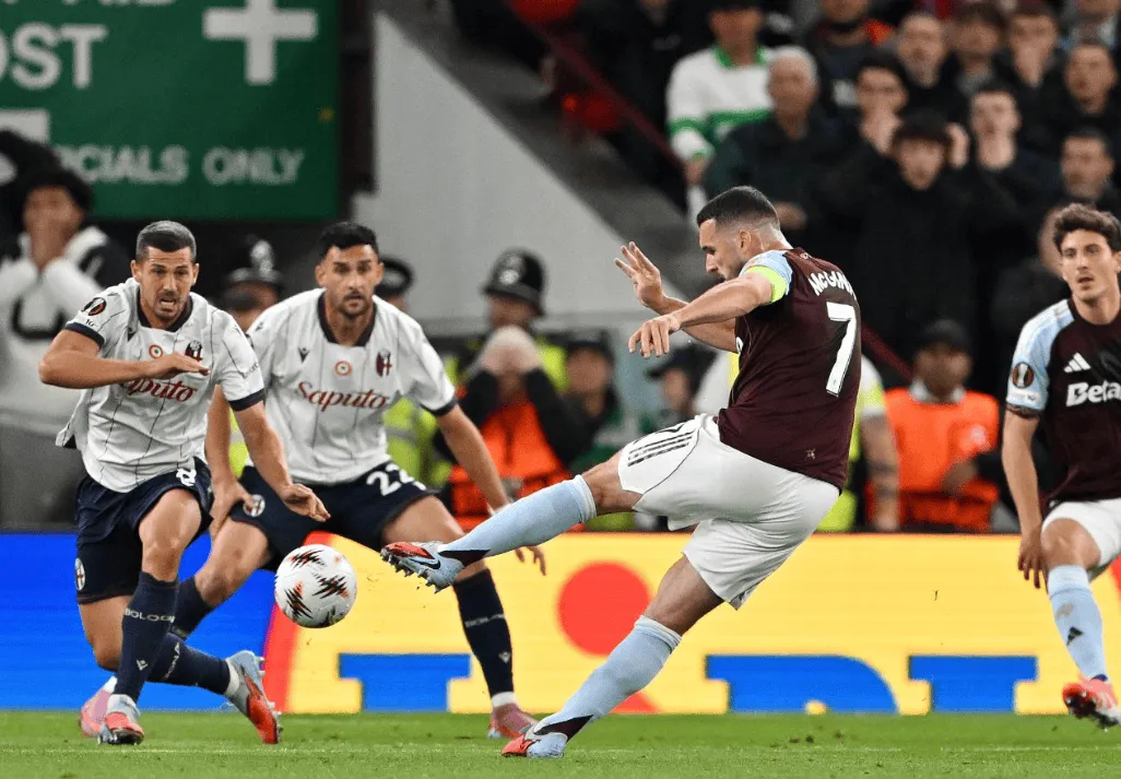 虎扑09月26日讯 欧联联赛阶段首轮,阿斯顿维拉主场1-0击败博洛尼亚,麦金在比赛中远射破门攻入制胜球。